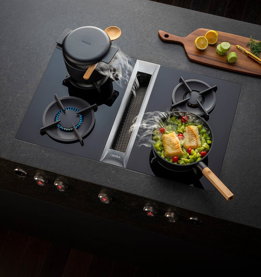 Topmerken zoals Bora, Novy, Siemens, Bosch en Gaggenau bieden hoogwaardige kookplaten met afzuiging, elk met unieke eigenschappen en technologieën.